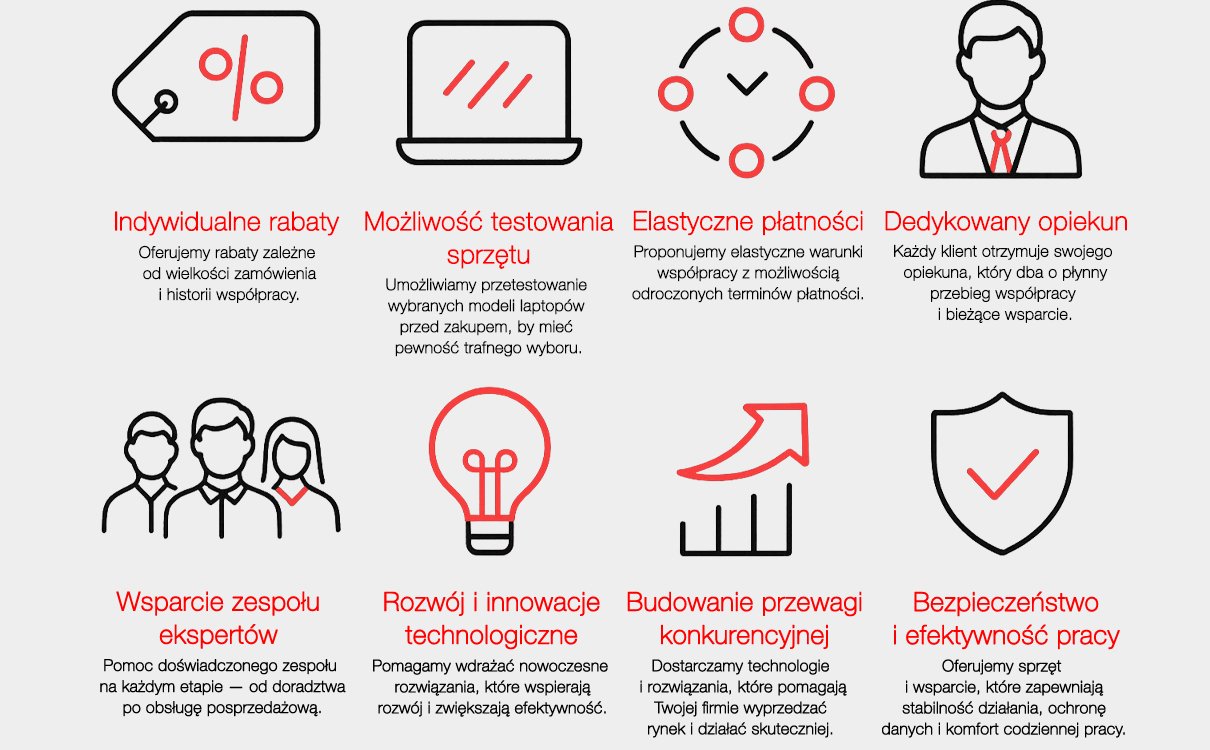 Z nami zyskujesz nie tylko sprzęt — zyskujesz partnera, który rozumie potrzeby Twojego biznesu i wspiera go na każdym etapie rozwoju.