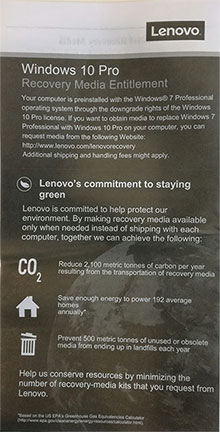 Jeśli na Twoim komputerze jest zainstalowany system operacyjny Windows 7 professional na mocy uprawnień do powrotu do starszej wersji wynikających z licencji na system Windows 10 Pro oraz jeśli otrzymałeś wraz z komputerem, taką ulotkę: