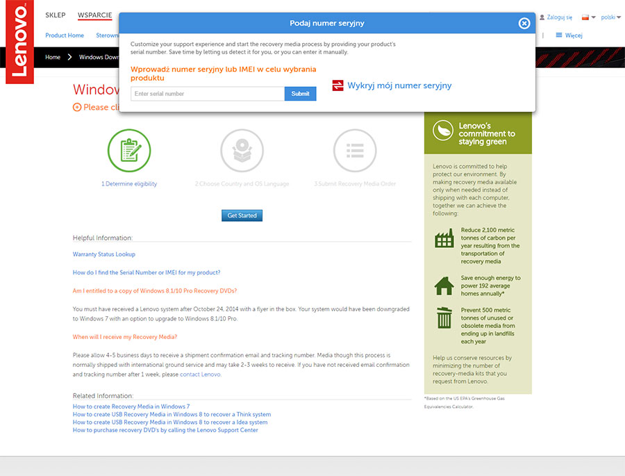 Jak uzyskać nośnik Recovery z systemem operacyjnym od Lenovo ?