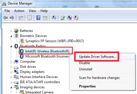 - Zlokalizuj adapter Bluetooth, kliknij prawy przycisk myszy i wybierz opcję Aktualizuj oprogramowanie Driver.