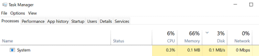 - Otwórz Menedżer zadań, kliknij kartę Procesory w celu wyświetlenia uruchomionych procesów i sortuj je według zużycia za pomocą nagłówka CPU.