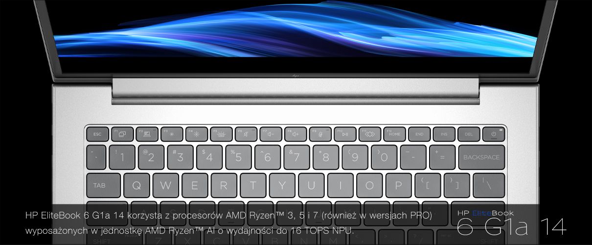 Laptopy z serii HP EliteBook 6 G1a 14 korzystają z mocy procesorów AMD Ryzen™ 3, 5 i 7 (również w wersjach PRO), wyposażonych w jednostkę AMD Ryzen™ AI o wydajności do 16 TOPS NPU.