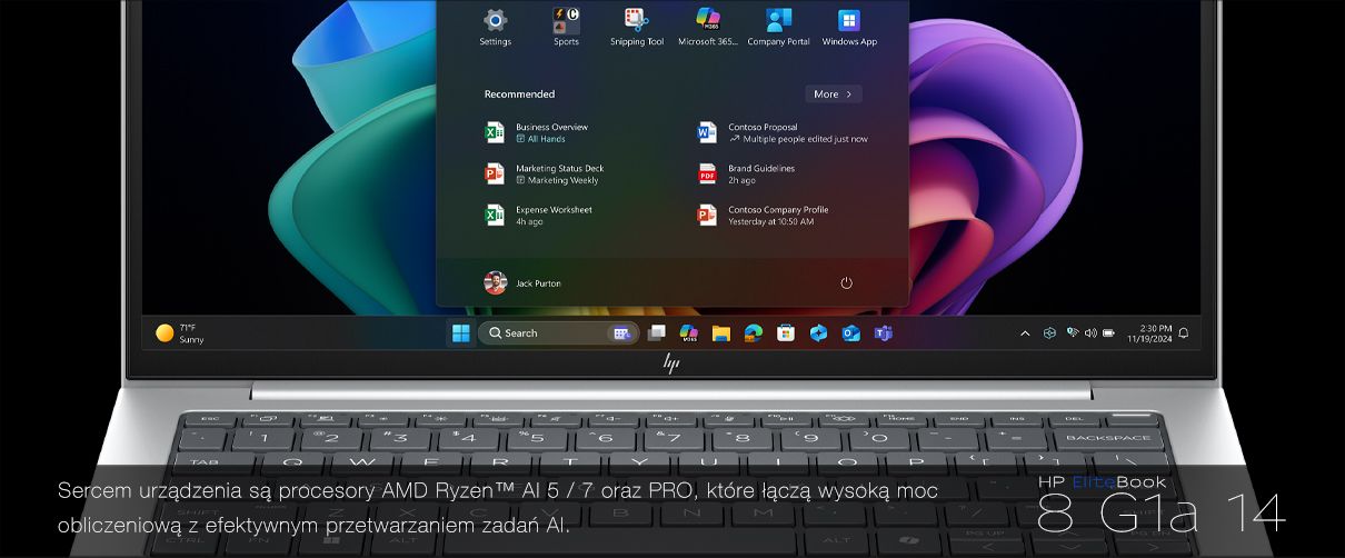 HP EliteBook 8 G1a 14 to laptop nowej generacji stworzony dla profesjonalistów, którzy potrzebują wysokiej wydajności, efektywnej pracy hybrydowej i zaawansowanych funkcji opartych na sztucznej inteligencji. Dzięki procesorom AMD Ryzen™ AI, zintegrowanemu NPU o mocy 50 TOPS oraz konstrukcji zoptymalizowanej pod produktywność, model ten zapewnia doskonałe osiągi w codziennych zadaniach biznesowych.