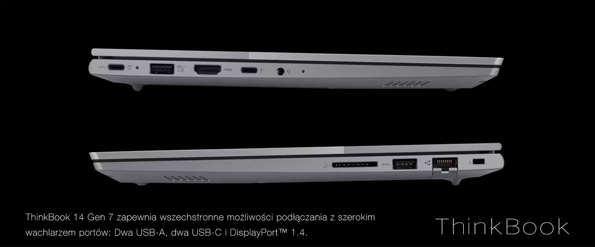 Mobilność i wytrzymała bateria to cechy, dzięki którym ThinkBook 14 Gen 7 staje się idealnym towarzyszem w podróży. Laptop ten łączy w sobie lekkość i elegancję, co sprawia, że jest nie tylko funkcjonalny, ale również świetnie wygląda w każdej sytuacji.