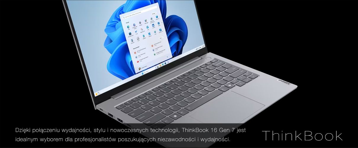 Pomimo imponujących specyfikacji, Lenovo ThinkBook 16 Gen 7 zachowuje lekki i elegancki design, co sprawia, że jest łatwy do przenoszenia i doskonale sprawdza się zarówno w biurze, jak i w podróży. Wytrzymała konstrukcja oraz długotrwała bateria stanowią dodatkowe atuty, pozwalając na bezproblemową pracę przez wiele godzin bez konieczności ładowania. Z ThinkBook 16 G7 otrzymujesz urządzenie, które niezawodnie wspiera Cię w każdym aspekcie Twojej zawodowej działalności, oferując jednocześnie styl i komfort użytkowania.