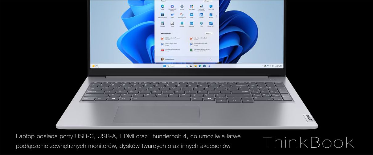 Lenovo ThinkBook 16 Gen 7 z procesorami AMD Ryzen to połączenie wydajności, niezawodności i elegancji, idealne dla profesjonalistów poszukujących laptopa do intensywnej pracy.