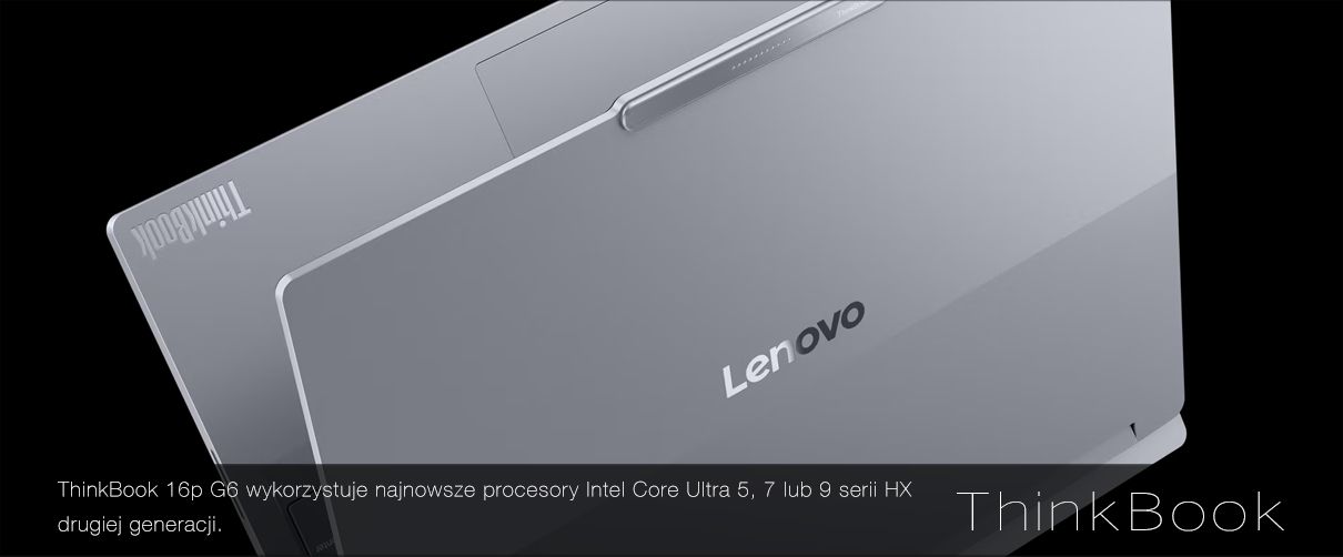 ThinkBook 16p G6 to zaawansowane narzędzie pracy dla twórców, inżynierów, projektantów i analityków. Dzięki nowoczesnym komponentom, takim jak procesory Intel Core Ultra HX, karta graficzna GeForce RTX oraz wyświetlacze z precyzyjną kalibracją kolorów, użytkownik otrzymuje pełnię możliwości w mobilnym i eleganckim formacie. To idealny wybór dla osób, które oczekują od laptopa nie tylko mocy, ale też inteligencji, stylu i funkcjonalności.