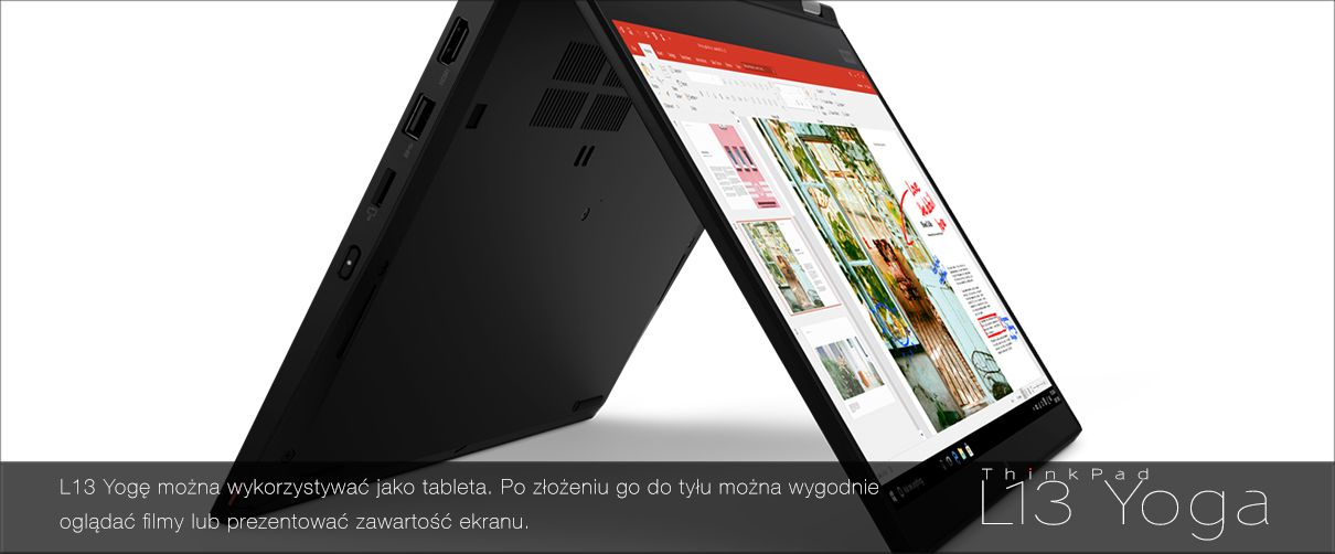 ThinkPad L13 Yoga z ekranem o przekątnej 13,3 cala i rozdzielczości FULL HD jest wygodnym narzędziem pracy oraz zabawy wtedy, kiedy wszystkie biznesowe obowiązki są już wypełnione.