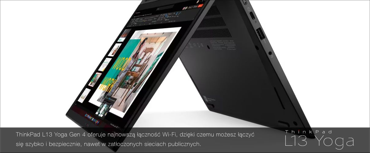 Dzięki ekranowi o doskonałej jakości oraz baterii o dużej pojemności, użytkownicy mogą cieszyć się długimi godzinami pracy bez potrzeby ładowania. Lenovo L13 Yoga Gen 4 idealnie wpasowuje się w nowoczesny styl życia, oferując pełen zestaw funkcji pomocnych w pracy biznesowej.