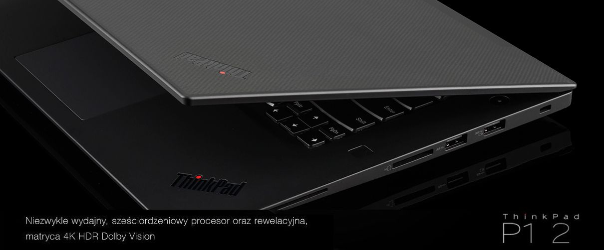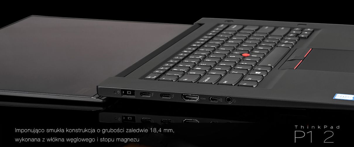 Wszystkie aspekty konstrukcyjne ThinkPada P1 2 generacji zostały dopracowane do maksimum, dla uzyskania wysokiej wydajności i jednocześnie ponadprzeciętnego bezpieczeństwa pracy. Na pierwszy plan wysuwa się design urządzenia – stonowany, ale przy tym widocznie ekskluzywny. Konstrukcja z włókna węglowego i stopu magnezu wytrzymuje nawet najtrudniejsze warunki. Mobilna stacja robocza ThinkPad P1 2 generacji jest dostępna w wielu konfiguracjach, między innymi z różnymi typami ekranów. W zależności od potrzeb możesz wybrać ekran FULL HD lub 4K – również OLED z Dolby Vision. Smukła obudowa mieści mocne podzespoły o profesjonalnym przeznaczeniu – nowy procesor 9. generacji, wydajną kartę graficzną i pojemny dysk twardy.