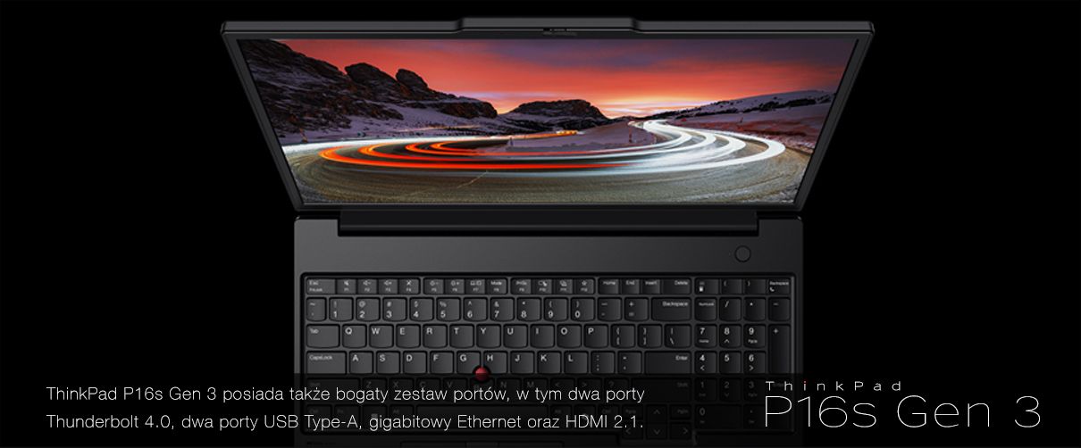 ThinkPad P16s Gen 3 posiada także bogaty zestaw portów, w tym dwa porty Thunderbolt 4.0, dwa porty USB Type-A, gigabitowy Ethernet oraz HDMI 2.1, co umożliwia łatwe podłączenie wielu urządzeń. Za łączność bezprzewodową odpowiada Wi-Fi 6E, Bluetooth 5.3 oraz opcjonalnie 4G LTE.