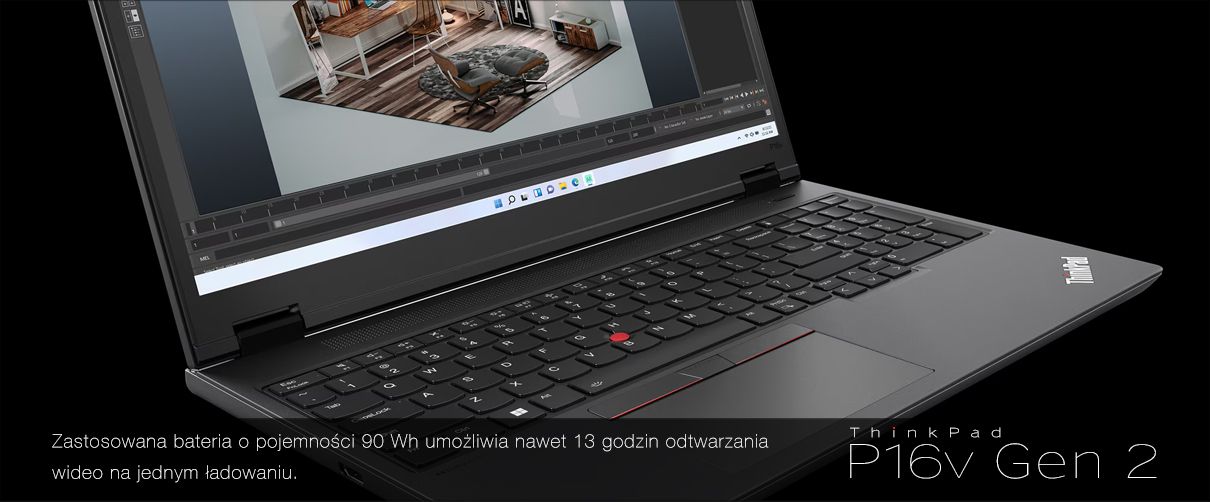 Zastosowana bateria o pojemności 90 Wh umożliwia nawet 13 godzin odtwarzania wideo na jednym ładowaniu. Klawiatura ThinkPad z klasycznym TrackPointem oraz podświetleniem zapewnia komfort pisania nawet podczas wielogodzinnej pracy.