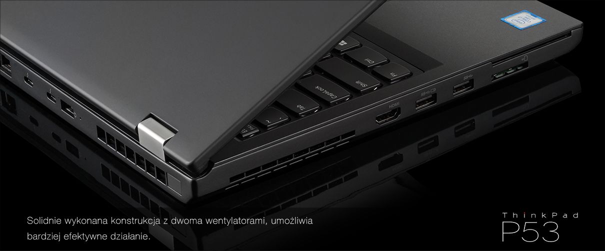 Nowoczesne komponenty zastosowane do budowy ThinkPada P53 usprawniają Twoje codzienne zadania i pozwalają Ci pracować szybciej. Na pokładzie tego świetnego laptopa znalazł się między innymi nowy procesor Intel Core 9. generacji lub procesor Intel Xeon. Działanie procesora jest wpierane przez nawet 128 GB pamięci RAM oraz kartę graficzną nVidia RTX 5000. Użytkownik ThinkPada P53 nie będzie musiał narzekać na brak miejsca na dane – dzięki możliwości korzystania z dysków o łącznej powierzchni do 6 TB zmieści wszystko, czego potrzebuje.