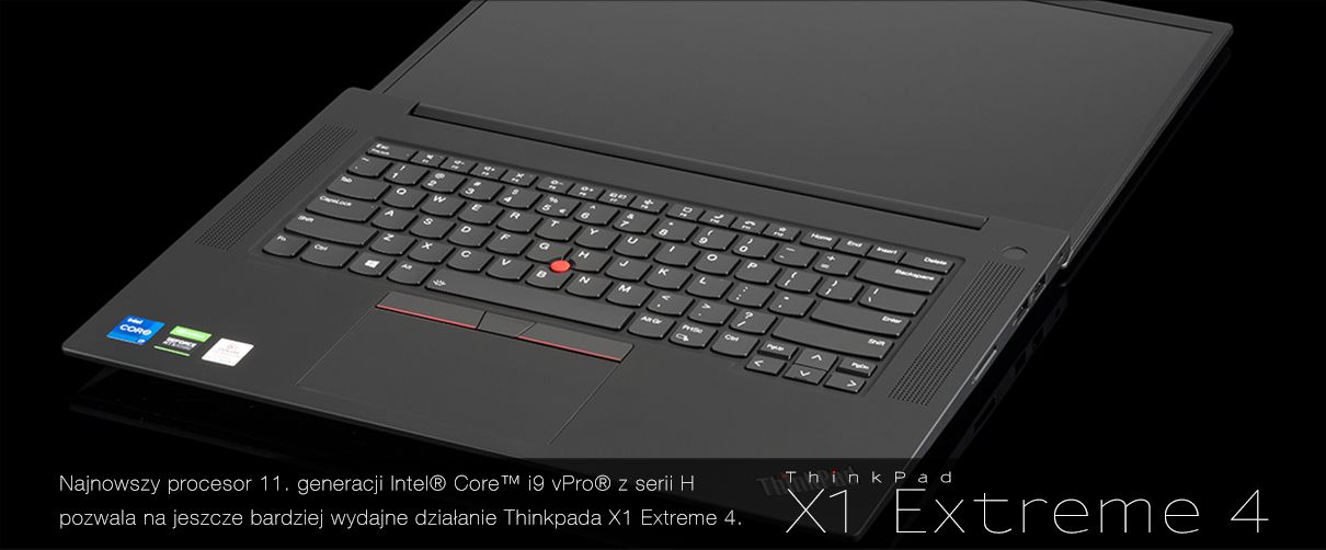 Model X1 Extreme 4 jest flagowym urządzeniem należącym do rodziny ThinkPadów – to wydajny, elegancki i niezawodny laptop dosłownie naszpikowany nowoczesnymi technologiami. Ulepszenia względem poprzedników dotyczą zarówno samej konstrukcji, jak i zastosowanych komponentów. Lenovo ThinkPad X1 Extreme 4 działa z procesorem Tiger Lake-H 11. generacji, a wśród dostępnych wersji są procesory Intel Core i7 oraz Intel Core i9 vPro.