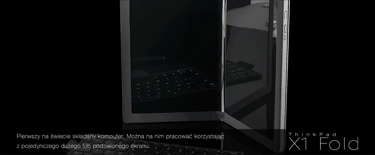 ThinkPad X1 Fold wygląda jak tablet, ale jest dostępny z fizyczną klawiaturą Lenovo Fold Mini, która łączy się z laptopem za pomocą technologii Bluetooth i może być też ładowana bezprzewodowo. W wersji podstawowej notebook ma dotykową klawiaturę, która pojawia się po złożeniu urządzenia i znika po jego rozłożeniu, a przy tym jest też wyjątkowo wytrzymały. Lenovo zachowało standardy jakości charakterystyczne dla całej rodziny ThinkPadów, a jednocześnie podniosło poprzeczkę. Na świecie nie ma drugiego takiego notebooka jak ThinkPad X1 Fold. To urządzenie zachwyci fanów nowoczesnych technologii i stanie się odpowiedzią na potrzeby najbardziej wymagających użytkowników.