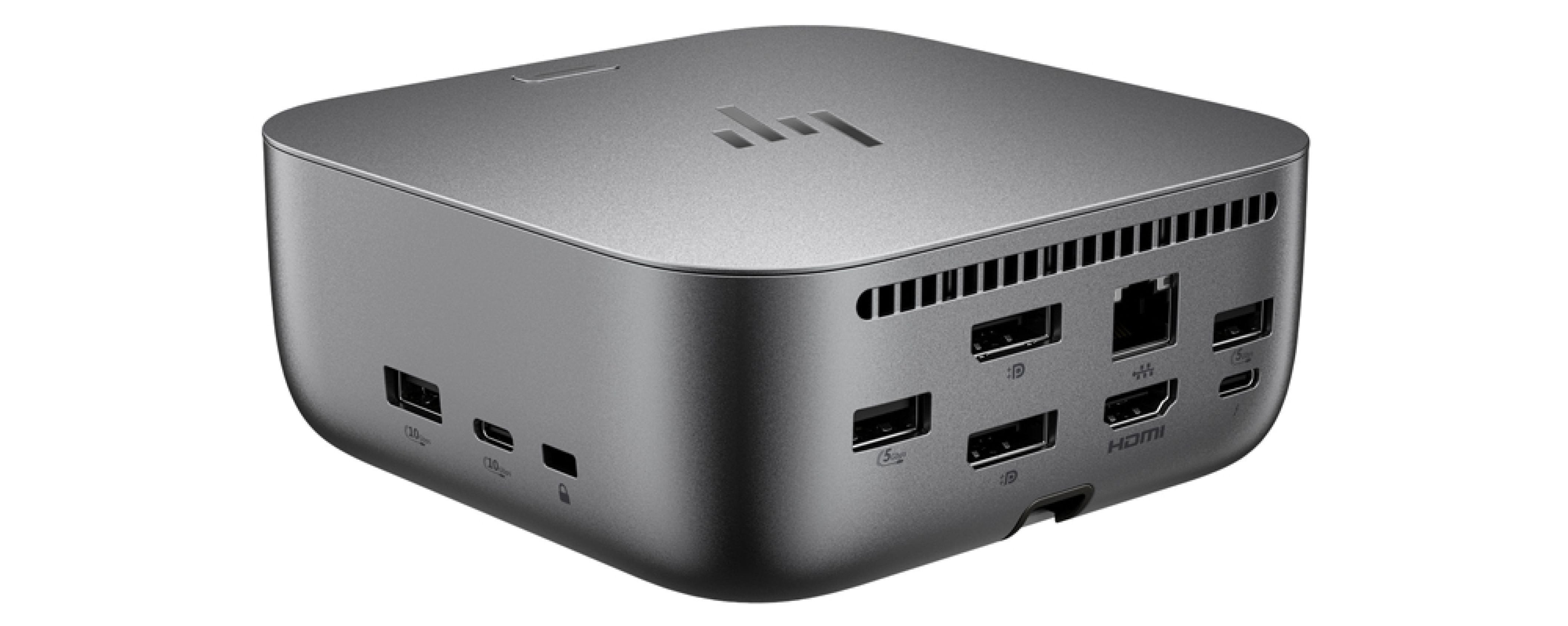 Do 100 W zasilania systemu przez Thunderbolt 4 zewnętrznym zasilaczem 120 W, profile PD 5V/3A, 9V/3A, 12V/5A, 15V/5A i 20V/5A, maks. natężenie 6,15 A i napięcie 19,5 V, obsługa maks. 4 monitorów zewnętrznych, wymiary 12,1 × 12,1 × 5 cm oraz waga 740 g.