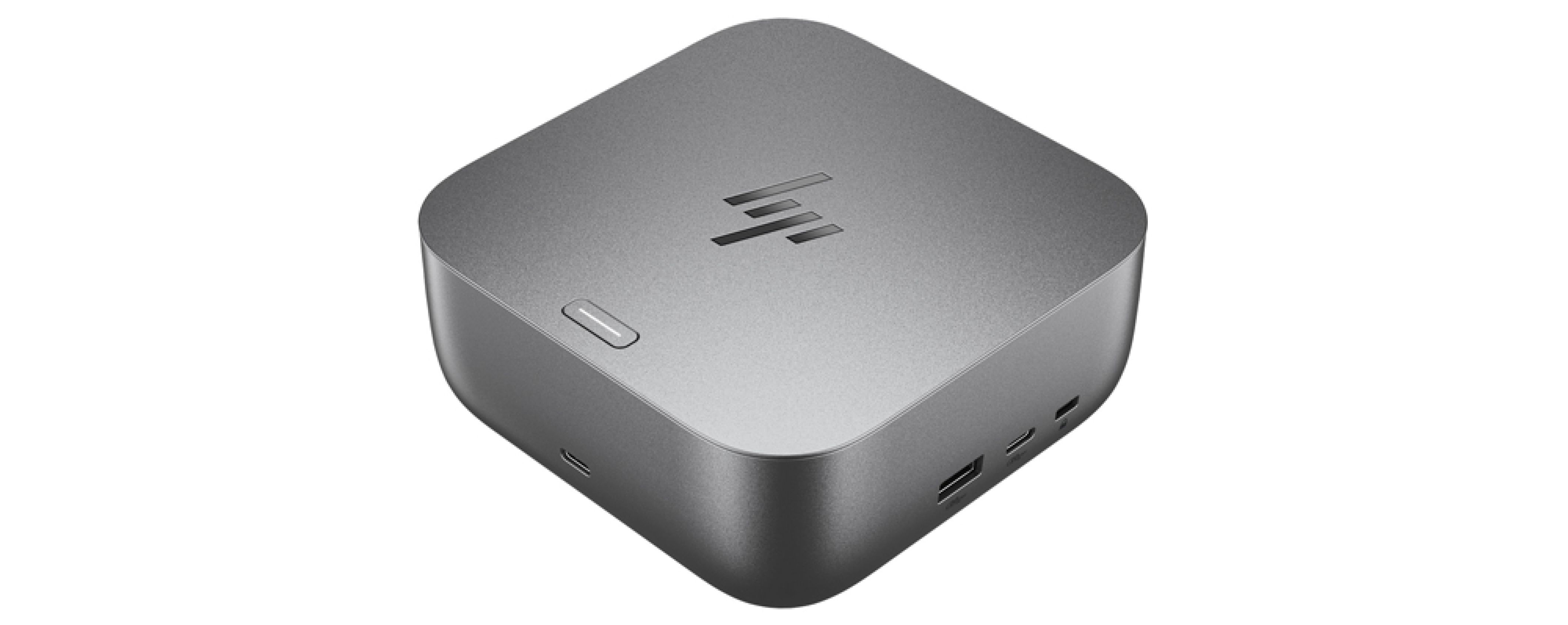 Do 280 W zasilania systemu przez okrągłe złącze 4,5 mm lub do 180 W przez Thunderbolt 4 z zasilaczem 330 W, profile PD 5V/3A, 9V/3A, 12V/5A, 15V/5A i 20V/5A, maksymalne natężenie 6,15 A i napięcie 19,5 V, obsługa maks. 4 monitorów zewnętrznych, wymiary 12,1 × 12,1 × 5 cm, waga 790 g oraz kolor szary.