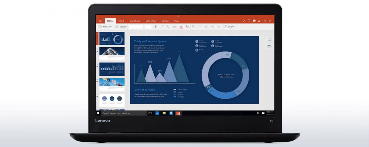 ThinkPad 13 to ultrabook dla fachowców, nauczycieli czy studentów, który oferuje idealny balans między mobilnością a produktywnością. Skonstruowany, by spełniać kryteria 12 testów trwałości wg specyfikacji wojskowych MIL-STD, doskonale sprawdzi się w salach konferencyjnych i lekcyjnych. Dodatkowo jest niezwykle lekki i posiada baterię, która pozwala na cały dzień pracy.