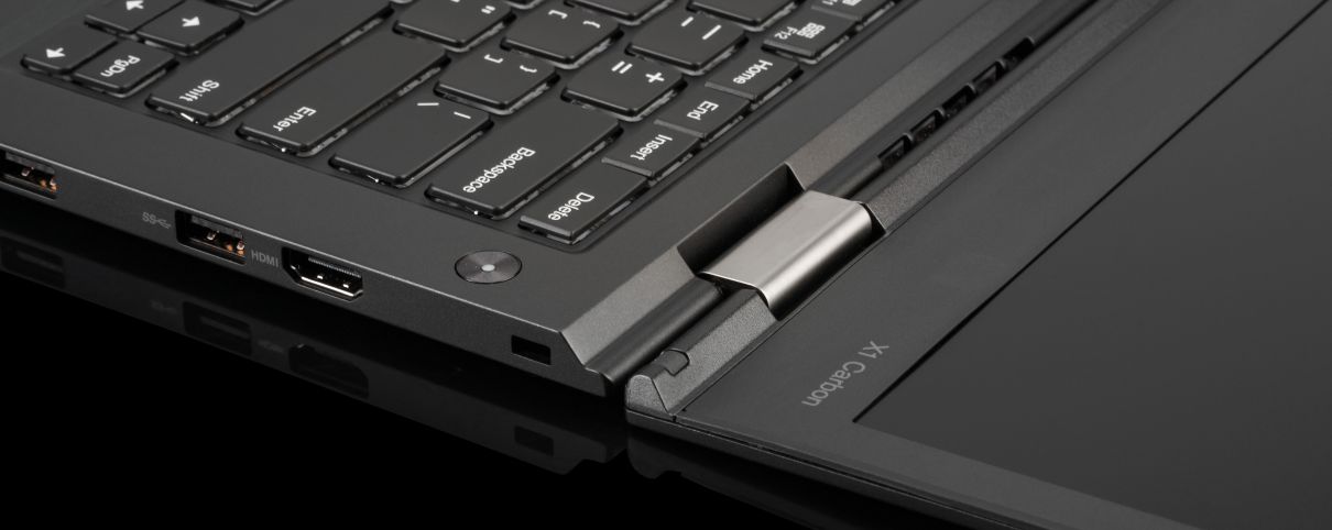 Jak przystało na solidność marki ThinkPad górna obudowa została wykonana z wytrzymałego i lekkiego włókna węglowego, a dolna z kompozytu magnezowo- aluminiowego.Za spójność tych elementów odpowiadają dwa stalowe zawiasy słynące z legendarnej jakości i solidności.