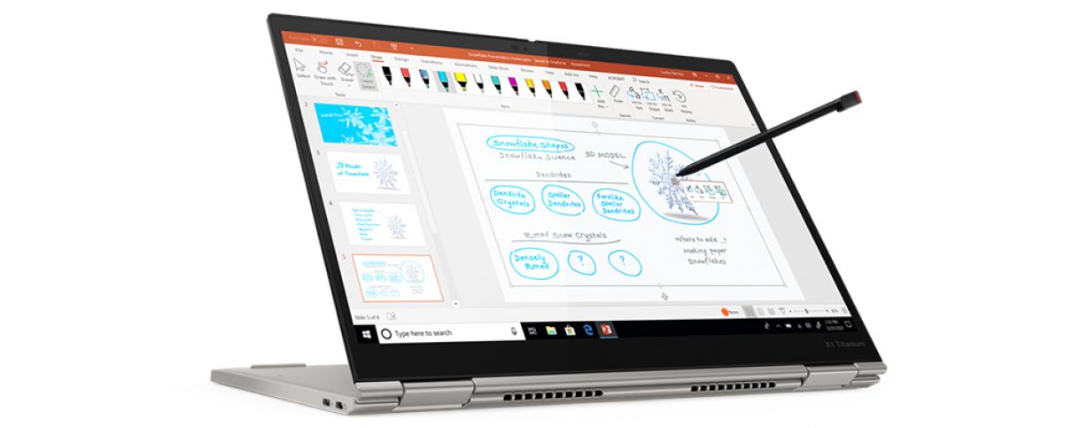 Kompaktowy ThinkPad X1 Titanium Yoga wyróżnia się na tle innych urządzeń mobilnych z rodziny ThinkPadów. To konwertowalne urządzenie ma przede wszystkim bardzo niską wagę – zaledwie 1,39 kg i jest cienkie, a to warunkuje też możliwość jego wygodnego przenoszenia i przewożenia. Ekran o przekątnej 13,5 cala QHD IPS (2K) cechuje się bardzo wysokim poziomem podświetlania – aż 450 nitów, co gwarantuje nieskazitelny obraz i doskonałe wrażenia wizualne. Ekran ma proporcje 3:2, jest dotykowy i dodatkowo powleczony powłoką antyrefleksyjną, przez co nie odbija promieni świetlnych i nie męczy wzroku nawet po wielu godzinach pracy.