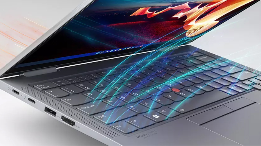 ThinkPad X1 Yoga gen 7 został wyposażony we wszystkie udogodnienia poprawiające komfort zdalnej pracy. Ważną zmianą w stosunku do poprzedniego modelu jest zastosowanie kamery 1080 px z opcjonalną funkcją rozpoznawania twarzy (IR). Urządzenie korzysta też z przycisku zasilania z wbudowanym czytnikiem linii papilarnych oraz technologii Tile umożliwiającej odnalezienie zagubionego laptopa nawet wtedy, kiedy jest wyłączony. ThinkPada można skonfigurować z modułem do śledzenia kafelków – wystarczy do tego aplikacja na smartfona. Tracker jest aktywny nawet do 2 tygodni i ułatwia znalezienie zagubionego lub skradzionego laptopa. Użytkownicy pracujący w przestrzeniach publicznych lub w open-space docenią obecność filtra PrivacyGuard maskującego dla osób postronnych to, co widać na ekranie, a każdy użytkownik bez wyjątku zyska bezpieczeństwo dzięki szyfrowaniu dysku dTPM 2.0. Lenovo w nowej Yodze zastosowało również technologię Computer Vision, która blokuje laptopa, kiedy użytkownik się od niego oddala i wybudza go, gdy użytkownik zbliży się do urządzenia. Technologia jest na tyle inteligenta, że kamera potrafi rozpoznać, czy ktoś przeszedł obok niej przypadkowo, czy zbliżył się w celu skorzystania z komputera.